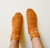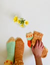 At the onset of spring, tiny orange wildflowers started to pop up all over my garden, and it was these surprise flowers that inspired the Early Bud Socks.
