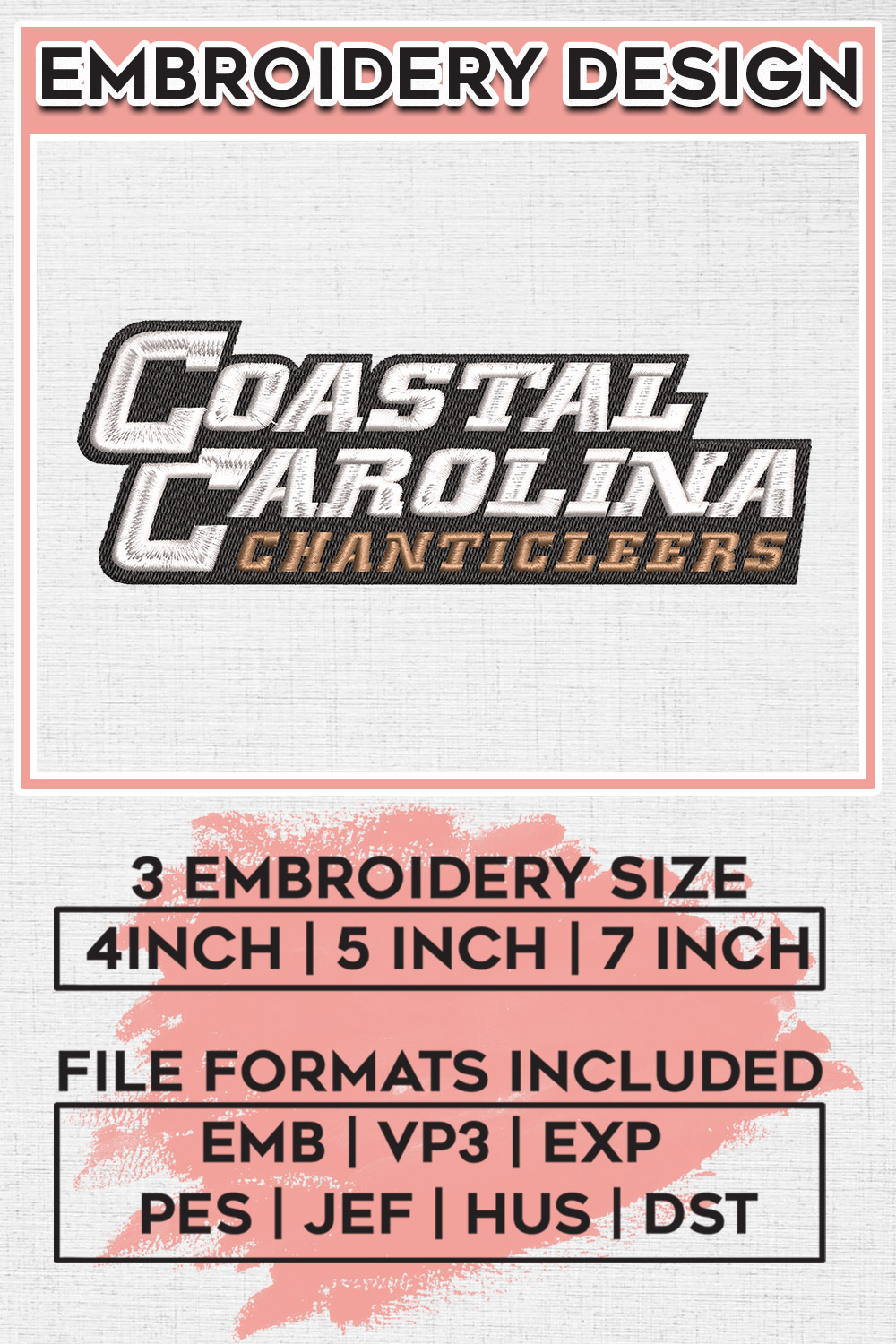 #NCAA #CoastalCarolina #Chanticleers #FootballEmbroidery #EmbroideryFiles #MachineEmbroidery #DigitalDownload #GameDayGear #SportsEmbroidery #TeamLogos #EmbroideryDesigns #CoastalCarolinaFootball #NCAAFootball #ChanticleerPride #EmbroideryArt #DIYEmbroidery #CustomEmbroidery #FootballSeason #NCAATeams