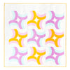 Wave is a cheerful modern quilt pattern featuring curved piecing and unique star quilt blocks. The pattern includes charts and directions for baby-king size quilts, an alternate layout, and required dimensions for using scrap fabric. There are so many ways to make this quilt reflect your unique style and fabric stash!