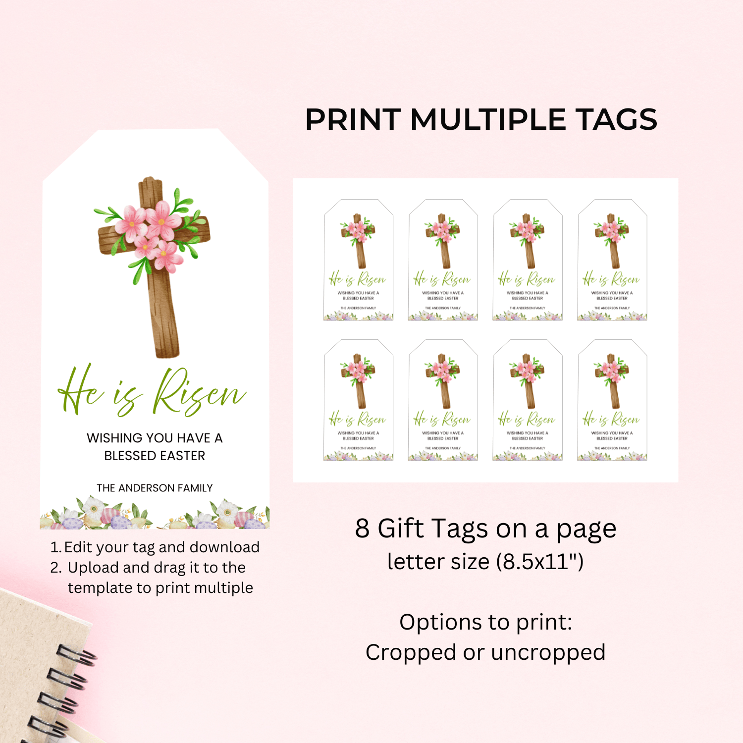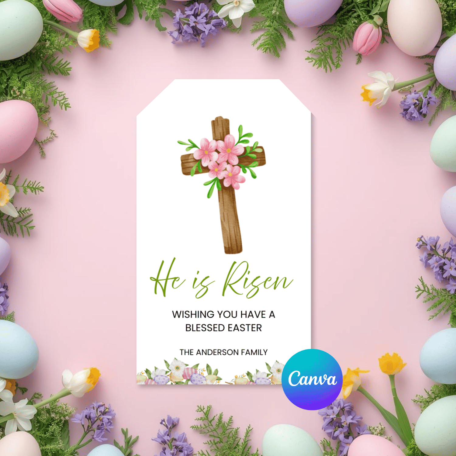 ESTR006 Christian Easter Gift Tags | He Is Risen Printable Tag | Religious Easter Treat Tags | Canva Editable | Instant Download
