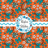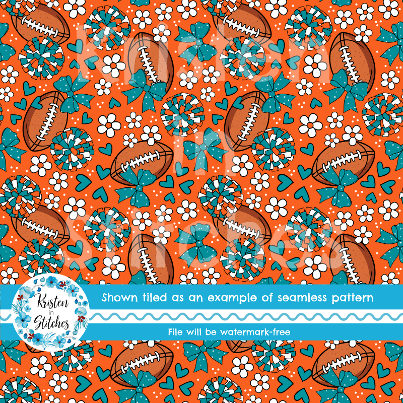 Football Cheer Bows and Pom Poms Seamless Pattern, Miami Dolphins Colors Orange and Aqua Blue