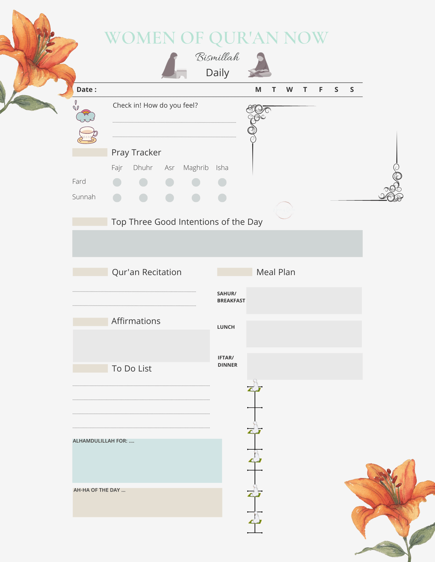 I personally love the flexibility with this soul care planner. It has every tool to keep you intentional while reminding you to care for your soul on a regular basis. Get your own and print the inserts as often as needed or better yet use it Digitally. May Allah bless our efforts and accept from us all. Aameen.