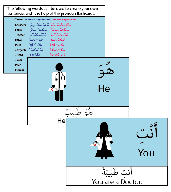 These beautifully illustrated cards were designed to engage your child and ease memoristion of pronouns which are frequently used in both the Noble Qur’aan and in general speech. The table included will aid your childs understanding of each pronoun inshaa'Allaah. Clear examples are given on each card. These cards can be displayed on a board or fridge for reviewing and can be used by children and adults alike. A list of 10 words is also included in the set so your child can practise writing sentences using the pronouns.