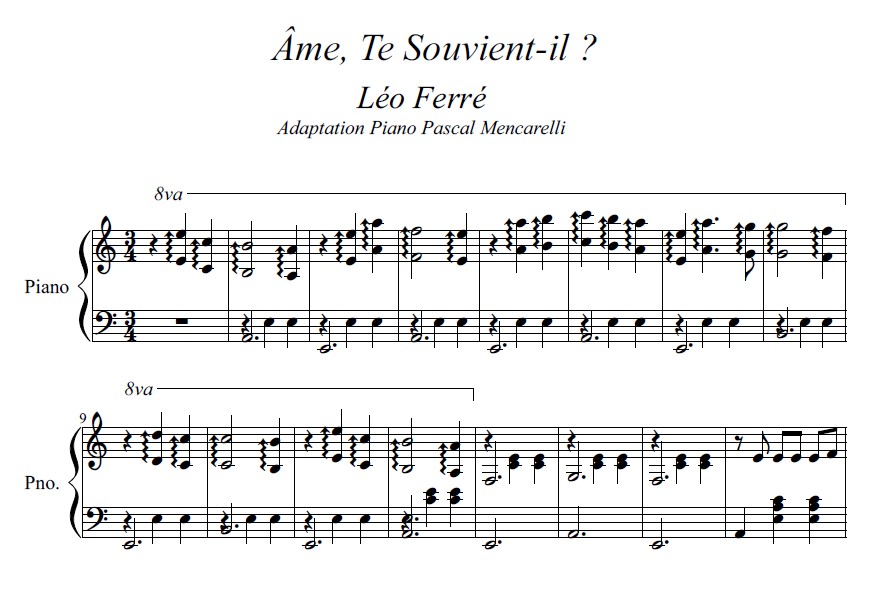 Léo Ferré - Âme te Souvient-il ? - Partition Piano Solo