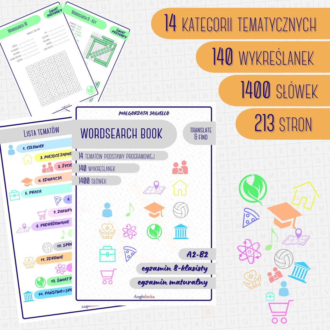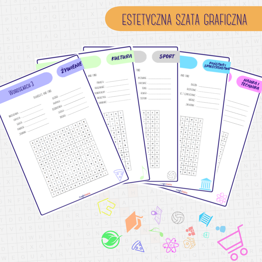 Wykreślanki świetnie sprawdzą się również jako pomoc nauczyciela, które można wykorzystać do rozgrzewki na lekcji, pracy domowej lub jako materiał na zastępstwo czy luźniejsze zajęcia.