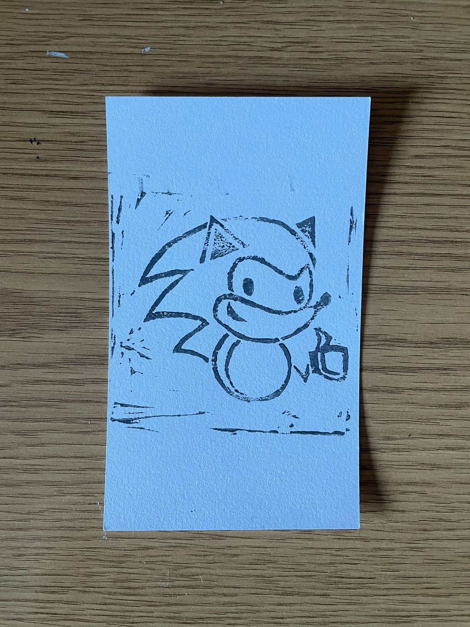 - Una estampita de Sonic el Erizo, también hecha a mano y dedicada (imagen 6)