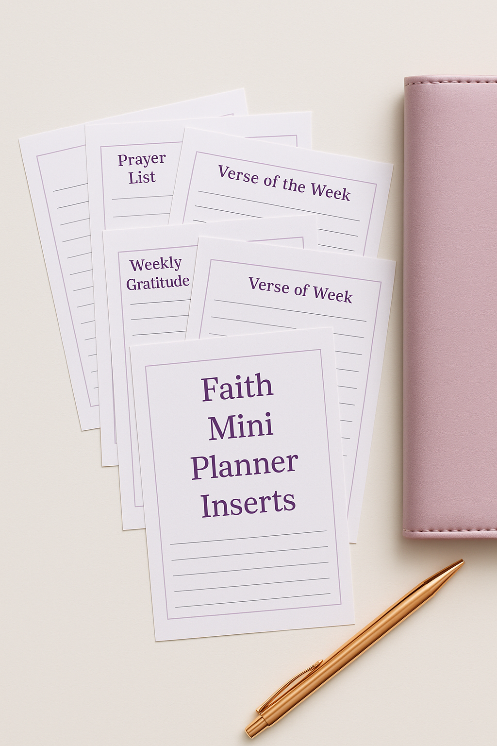 Stay rooted in your walk with God while organizing your days intentionally. This beautifully styled 5-page insert set includes: