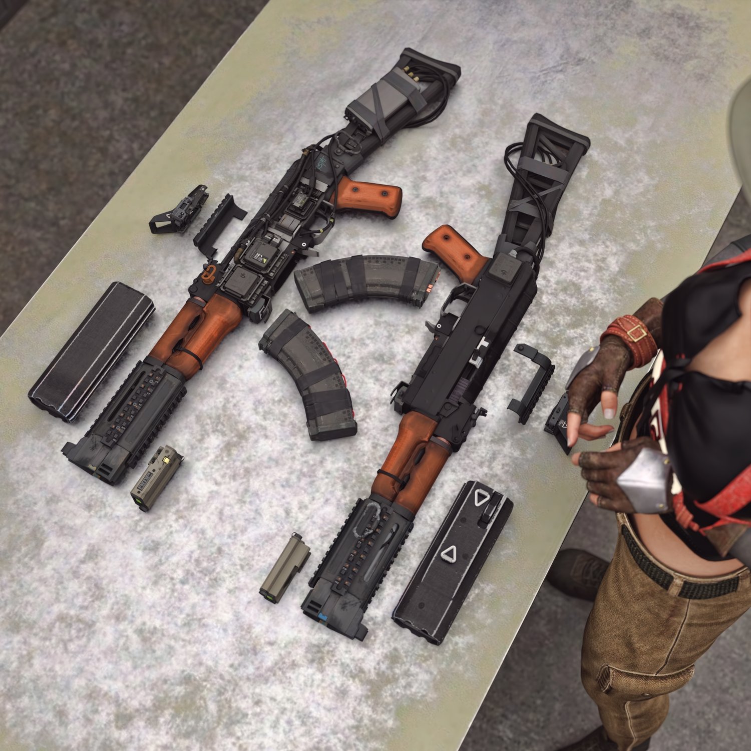 A very cool futuristic variant of the AK rifle, from the not very successful game. Rigged and converted for use with DAZ. I wouldn't say that putting a lot of stuff on AK rifle is a realistic future, but looks cool anyhow :D Trigger, bolt, silencer, etc also rigged for more realistic pictures. Includes a red dot sight, a rail mount, a laser and a silencer, for various porpoises and pictures.
