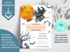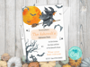 This editable digital Halloween party invite with a flying witch is perfect for any Halloween party!