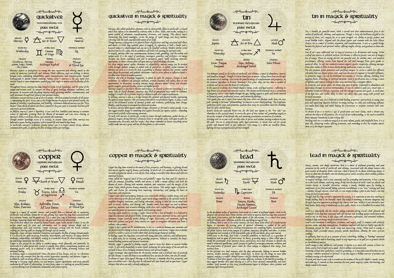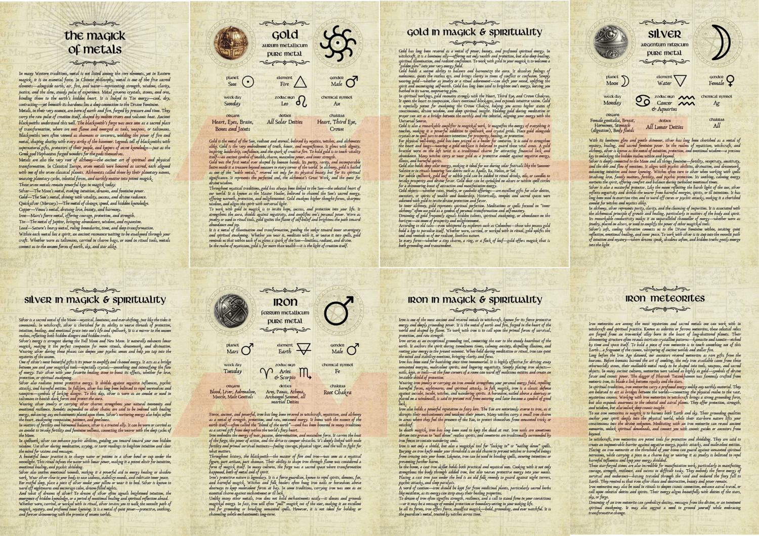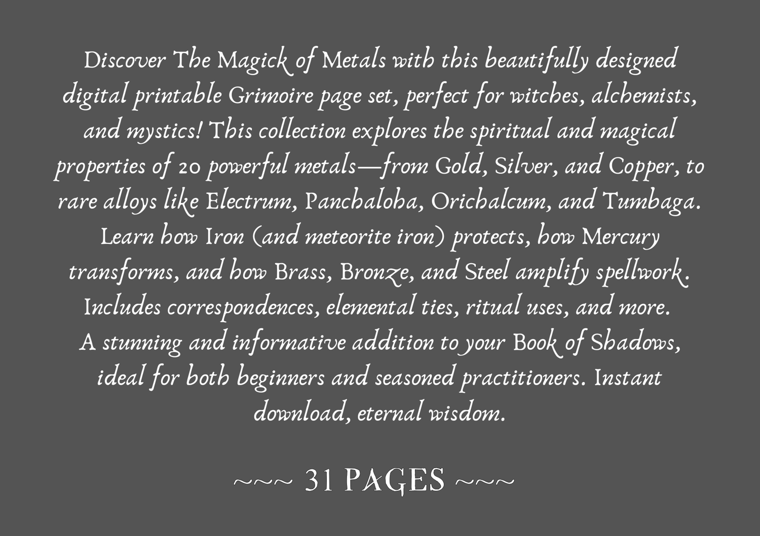 Discover The Magick of Metals with this beautifully designed digital printable Grimoire page set, perfect for witches, alchemists, and mystics!