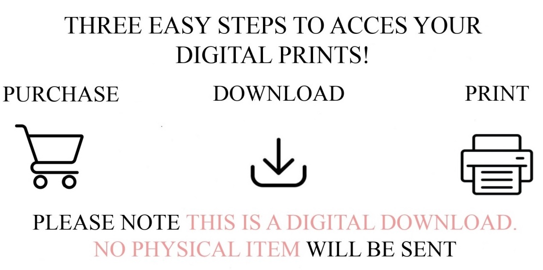 Upon purchase, you will be able to instantly download this print in five different sizes/ratios: 2x3, 3x4, 4x5, 5x7, and 11x14, there will be more details below.