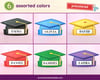 - COLORED GRADUATE CAPS ready to cut and assemble, and BLACK LINE CAPS for coloring or printing onto colored card (ink-saving)