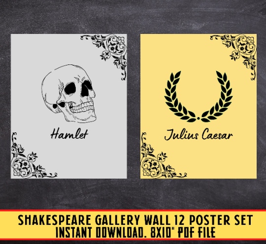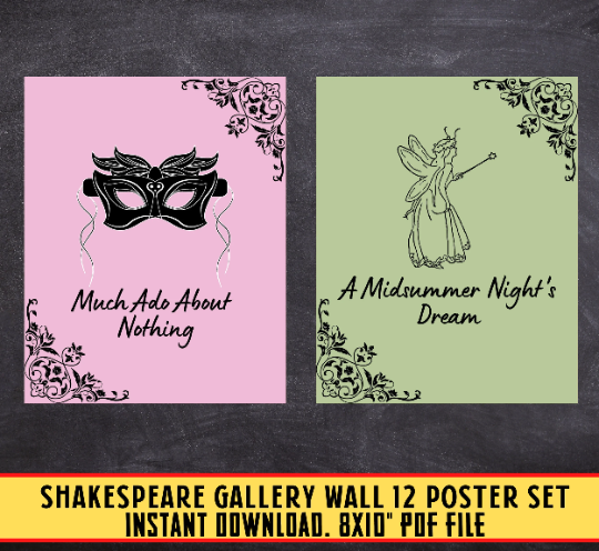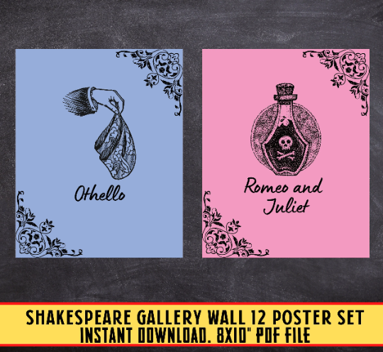 Set of 12 Shakespeare Gallery Wall, english class, classroom art, shakespeare plays posters, famous plays art, Classroom Decor, high school