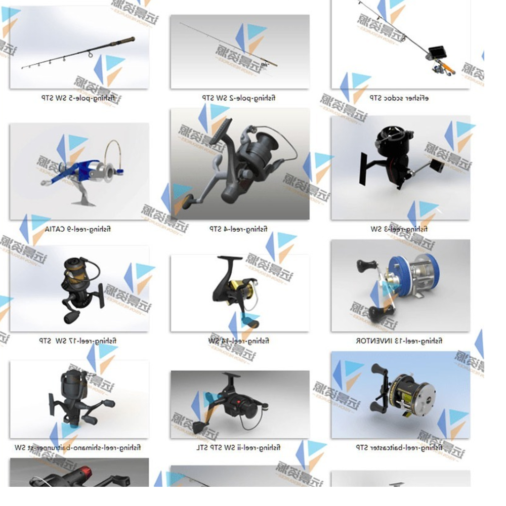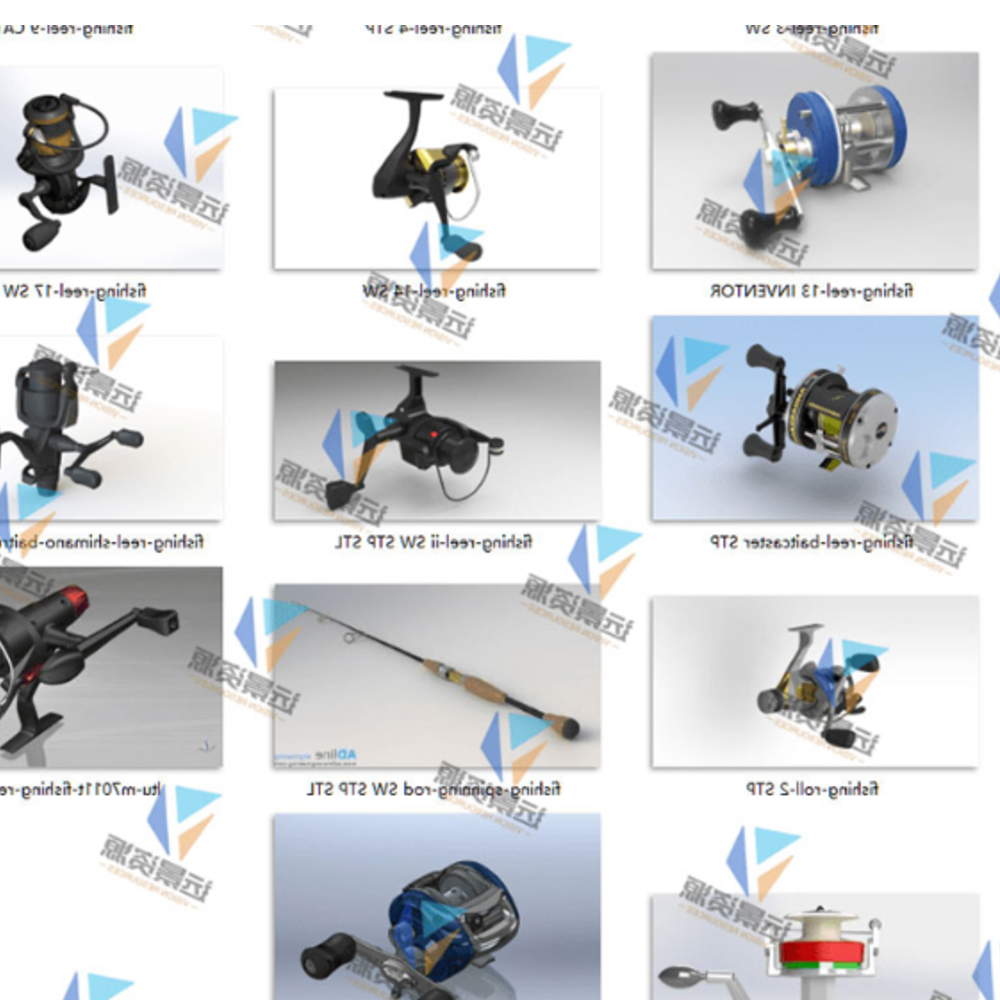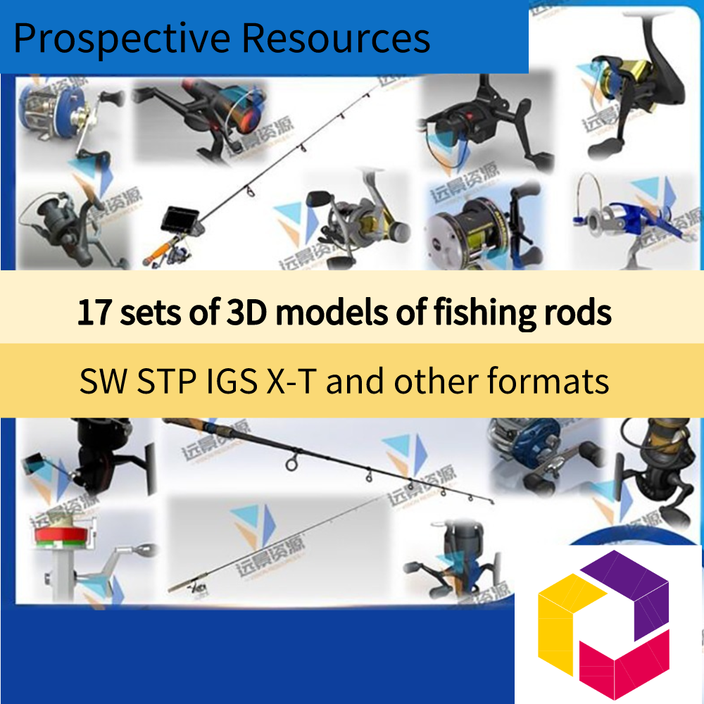 SolidWorks structural design of 17 sets of fishing rods, 3D models of fishing line and gear