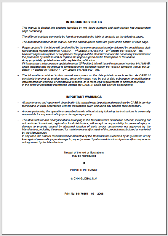 Case IH Agriculture JX60 JX70 JX80 JX90 JX95 Tractors Print No. 84176554B Service Manual
