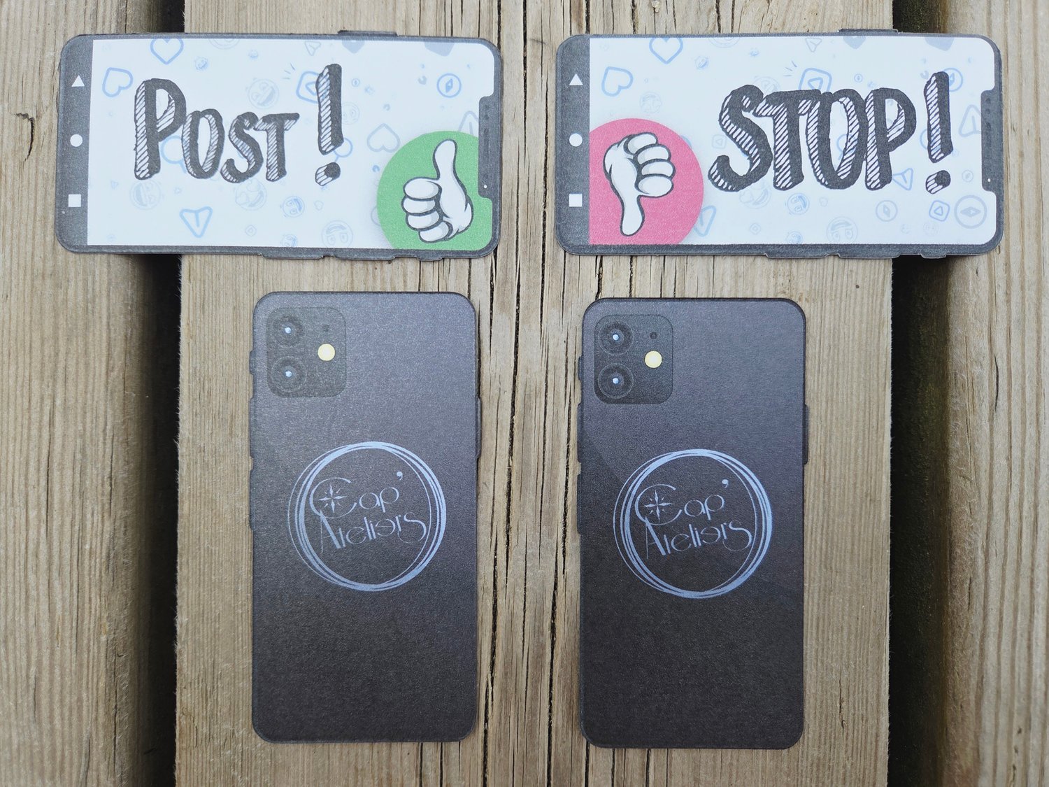 - Cartes “post" / "stop”. Plastifiées à la main.