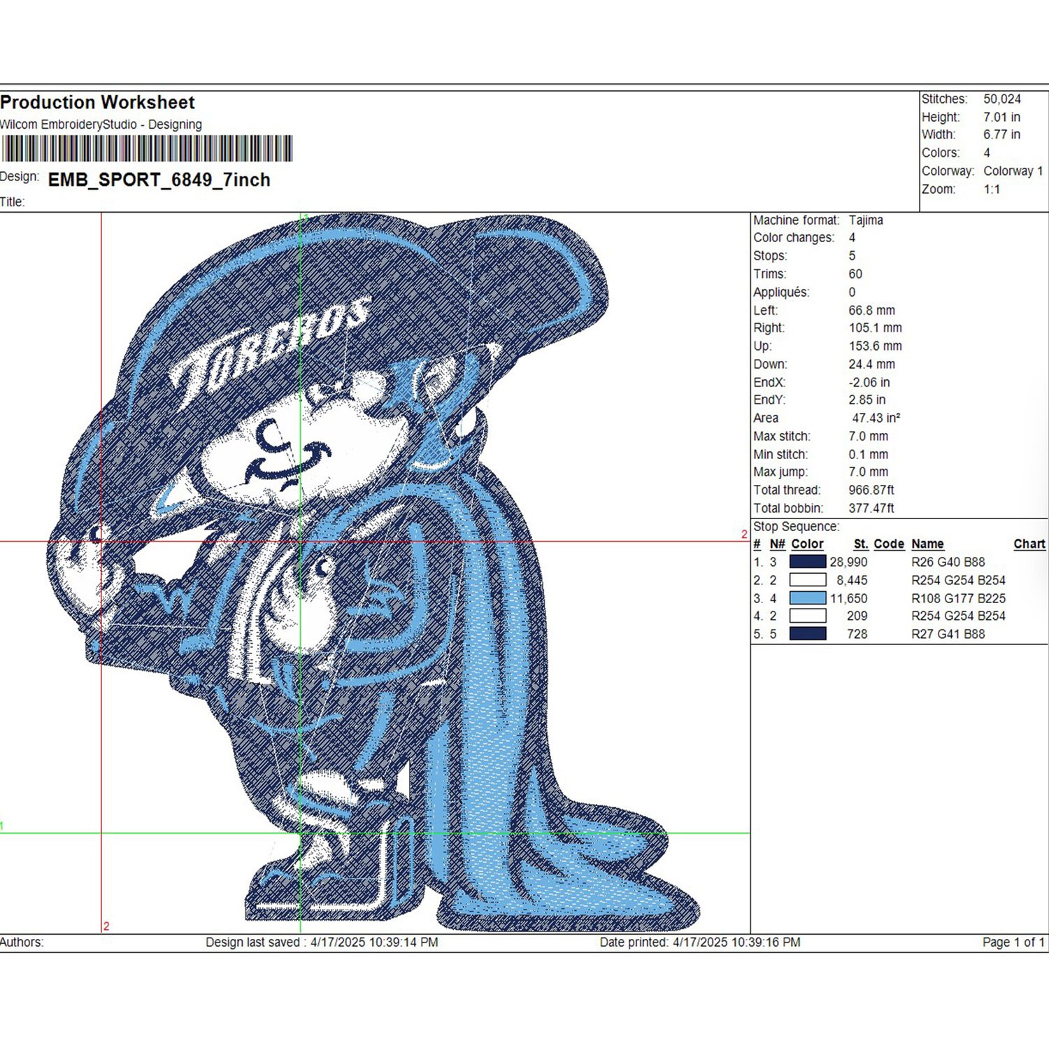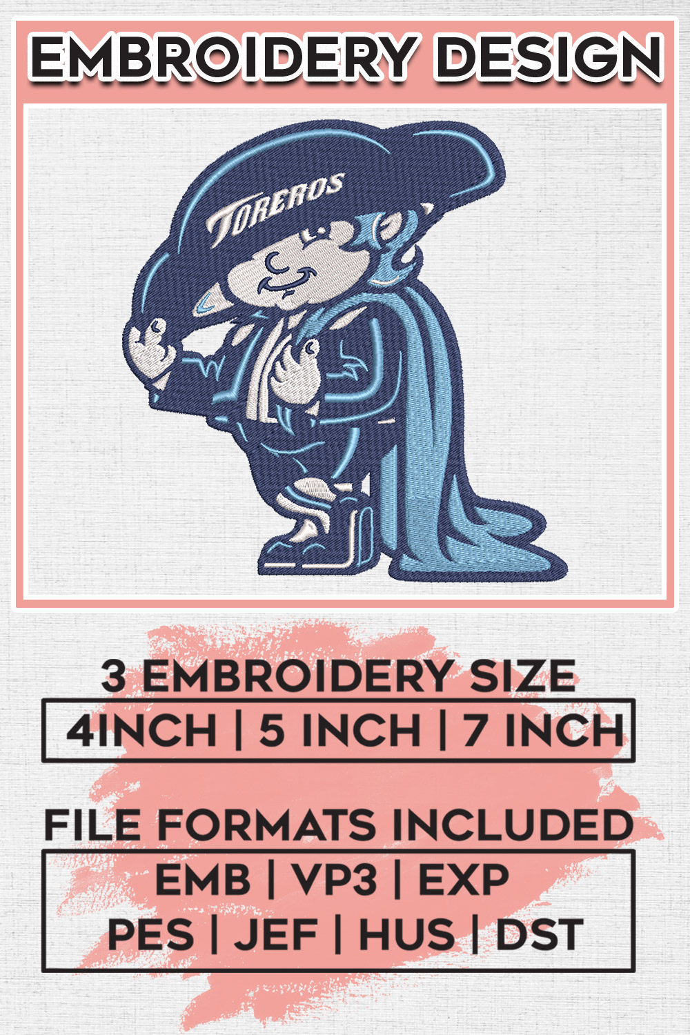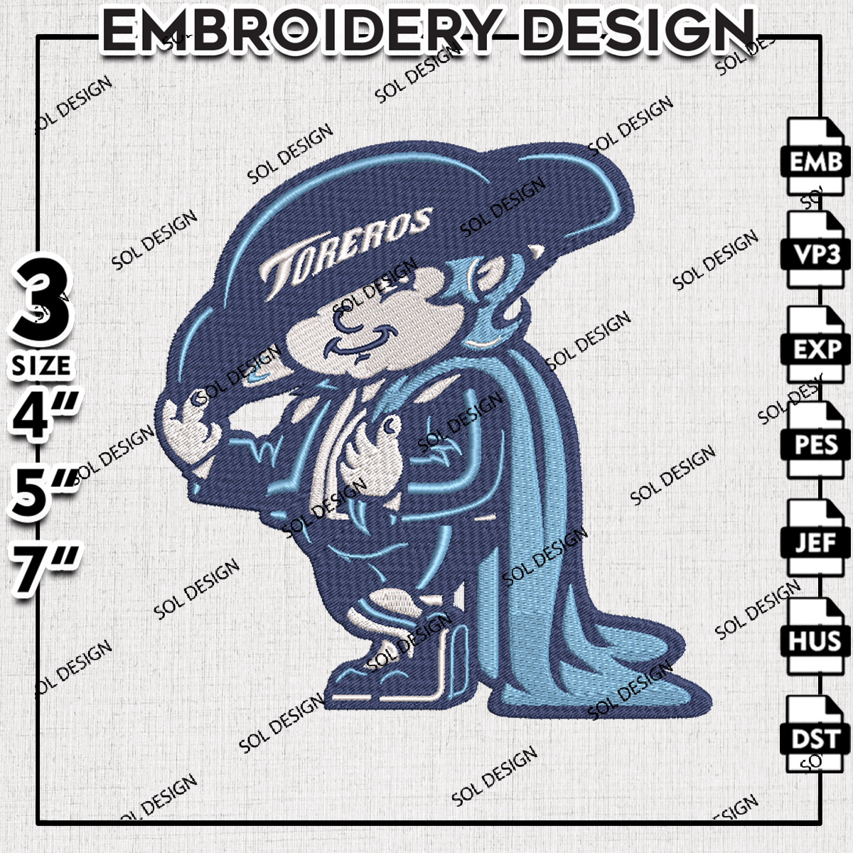 San Diego Toreros Mascot Embroidery Designs, NCAA San Diego Toreros Machine Embroidery Designs, NCAA Logo embroidery designs, Ncaa USD Toreros Logo, Digital Download