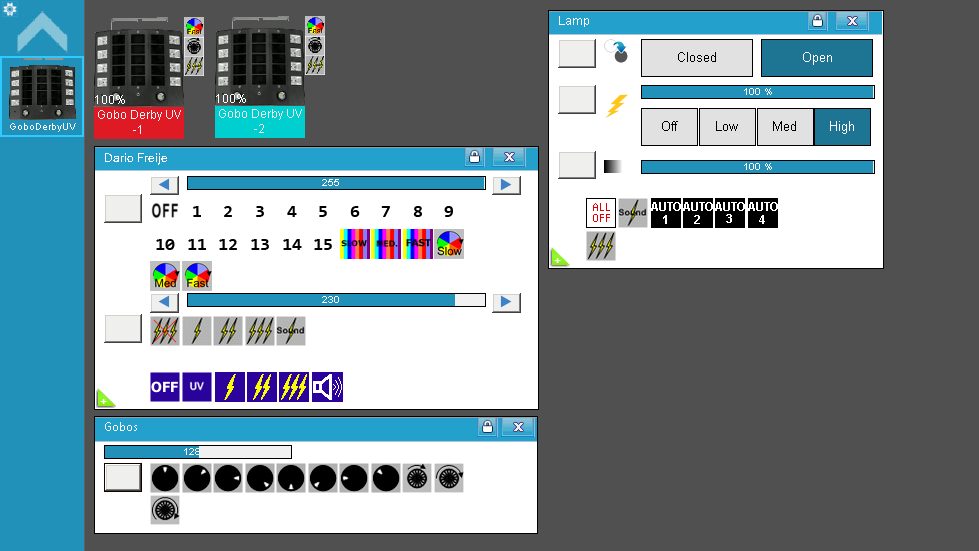 • Desde el panel "Gobos" controlan los movimientos del Derby.
