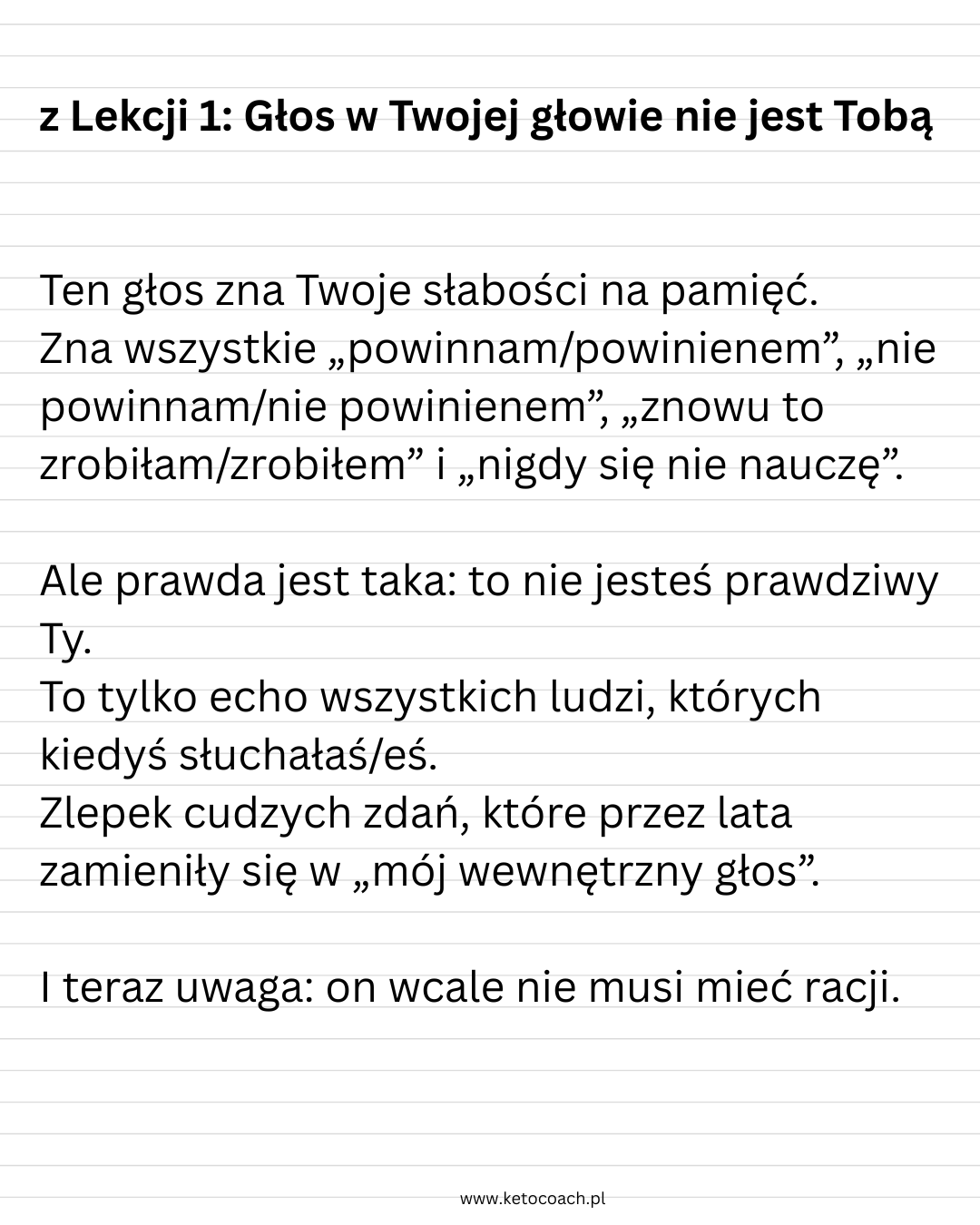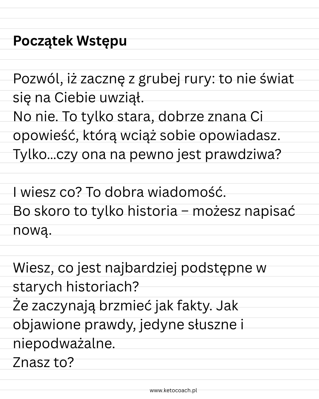 – i zaczniesz pisać o sobie nową, Twoją prawdziwą historię.