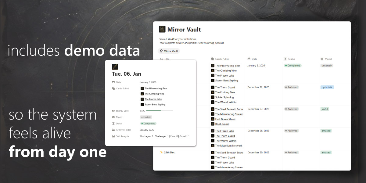 Digital Mirror is a premium Notion-based journaling system designed for long-term reflection and pattern recognition.
