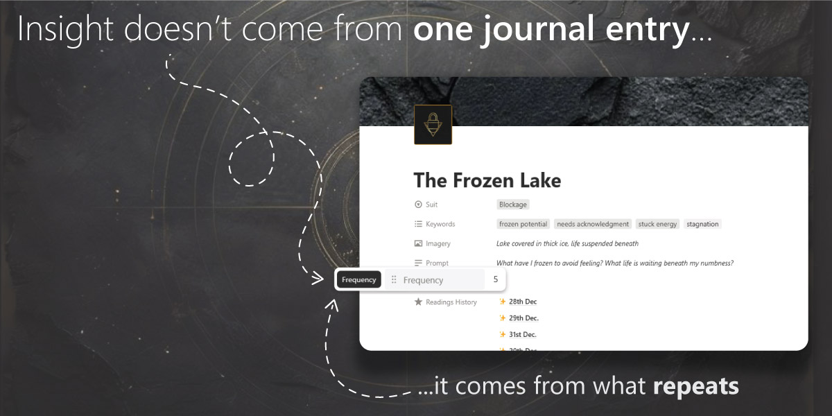 Instead of focusing on daily productivity or quick insights, it helps you observe what returns: emotional and psychological themes, recurring symbols, and patterns that only become visible over time.
