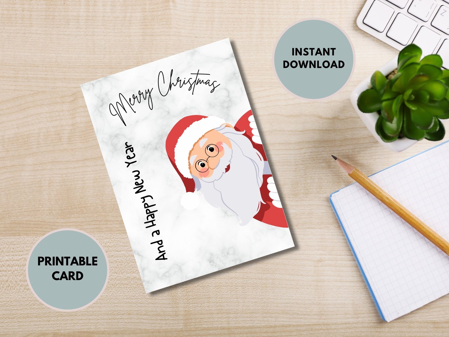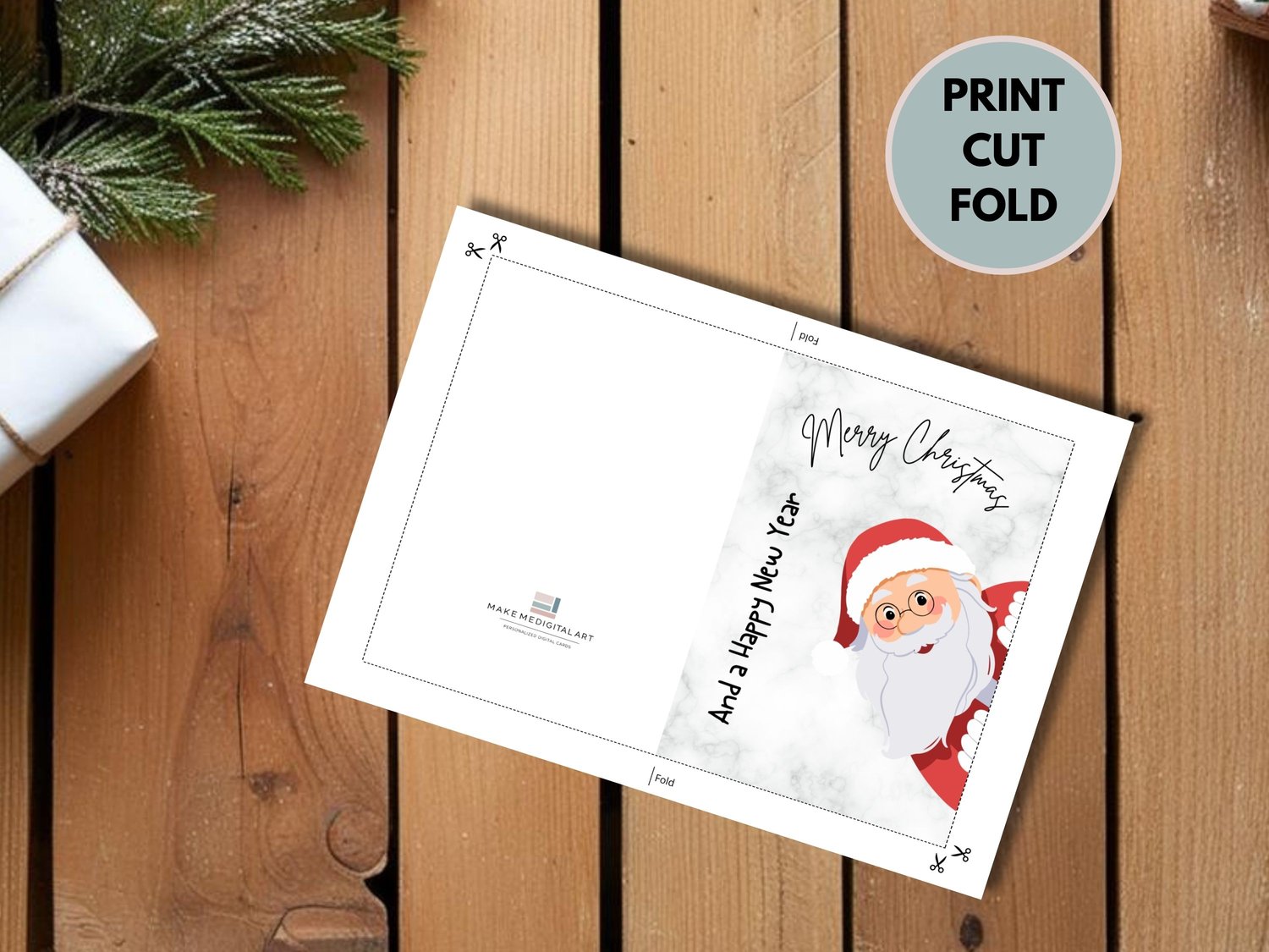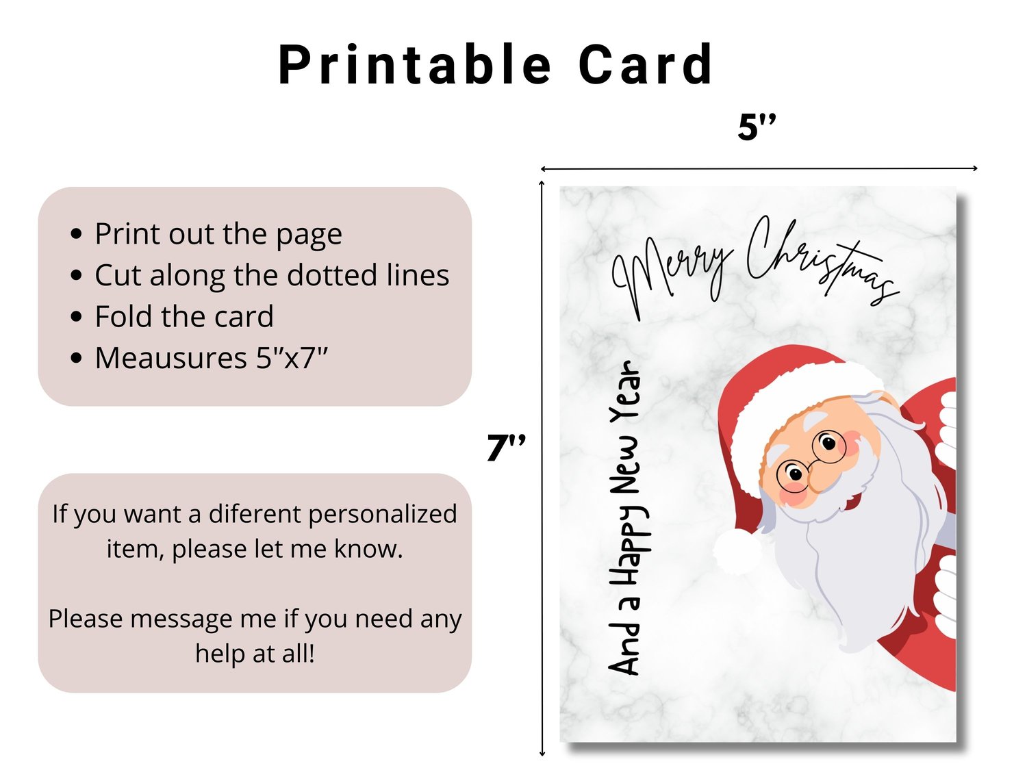 Santa Claus Merry Christmas Greeting Card 5'’x7'’ Christmas Tree Digital Download Printable Christmas Card Instant Download 300 dpi Resolution