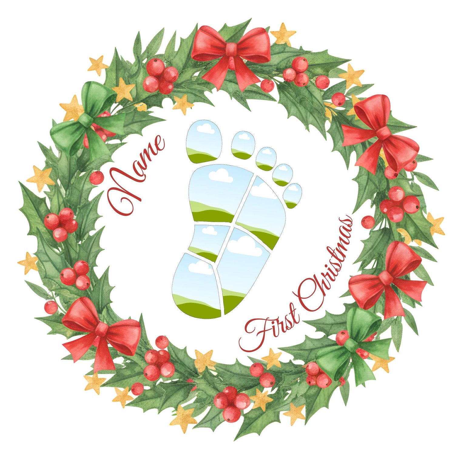 Capture the magic of your baby’s First Christmas with this adorable Footprint Photo Collage Canva Template.