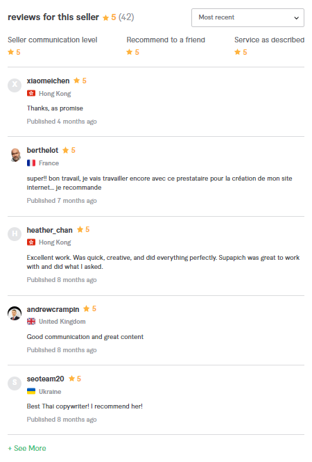 In order to provide customers with an alternative to the higher fees on Fiverr, I have created this website. It allows customers to avoid those fees while still being able to hire me for Thai content. You have the option to either hire me through Fiverr or directly on our website.