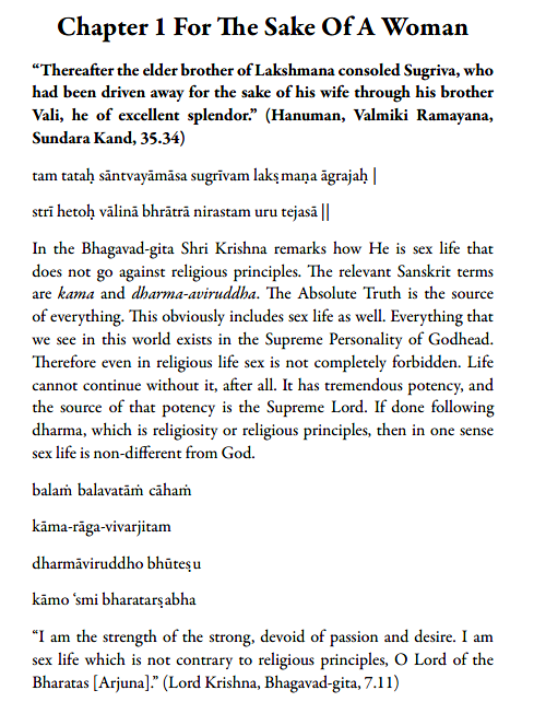 Imprisoned in Lanka and emaciated by grief, Sita Devi, who is the devoted wife of Shri Rama and one who is dear to behold, is discovered by the heroic Vanara, Hanuman. Acting as Rama's messenger, Hanuman recounts his incredible, solo journey across the vast, one hundred yojana ocean (eight hundred miles) into the city of Rakshasas.