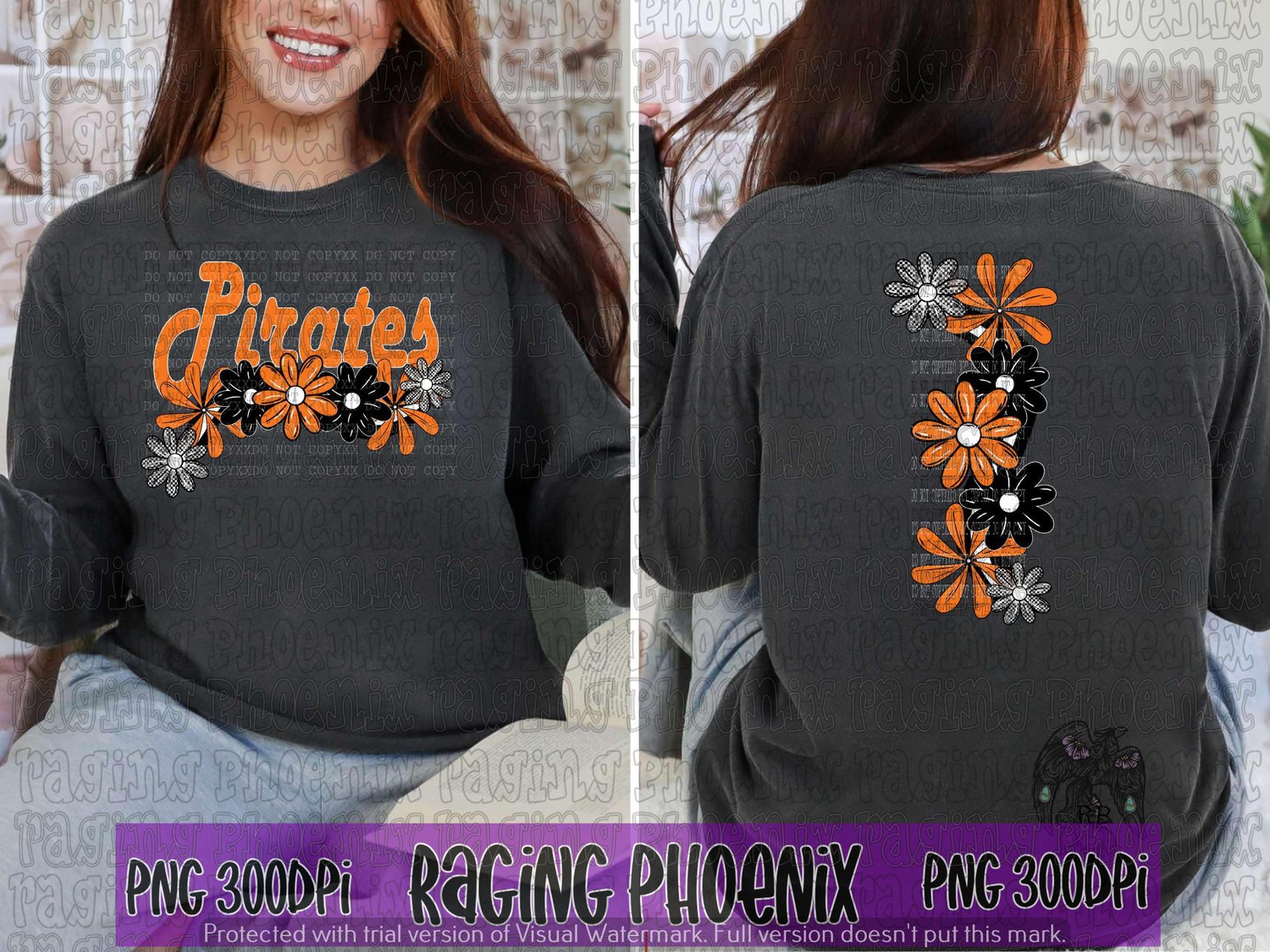 RETRO FLORAL STRIPE PIRATES-ORANGE FT41A