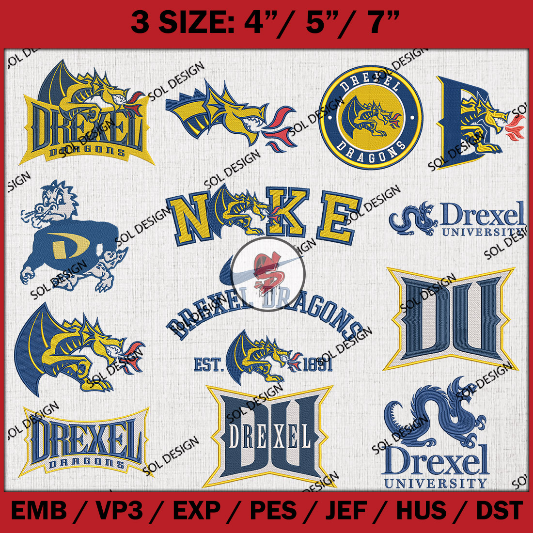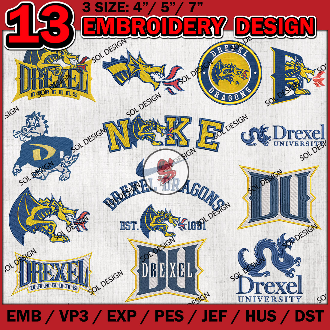 13 Drexel Dragons Bundle Embroidery Files, College Football Embroidery Designs, NCAA Drexel Dragons Machine embroidery Design Bundle, Ncaa Drexel Logo bundle, Digital Download