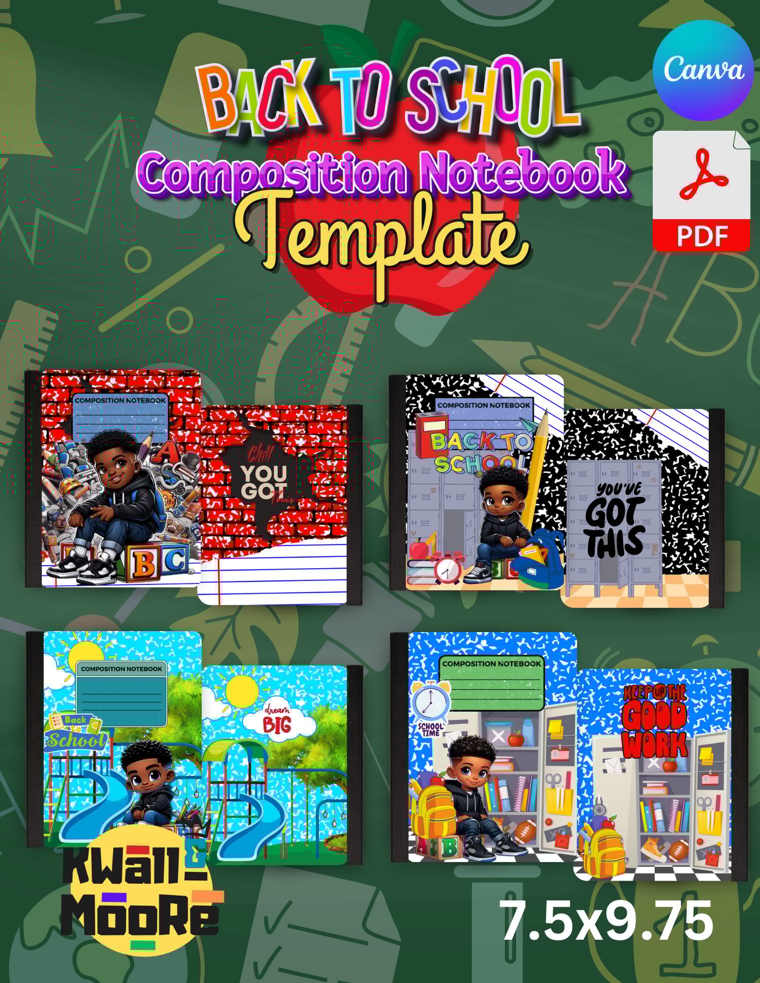 16 Back To School Editable Themed Composition Notebook Template, Canva Editable, PDF File