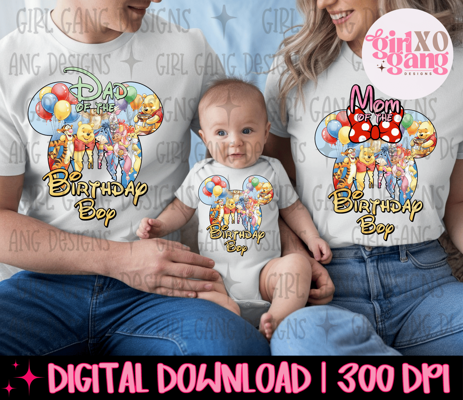 Yellow bear d castle birthday boy and family png, mom of birthday boy, dad of birthday boy