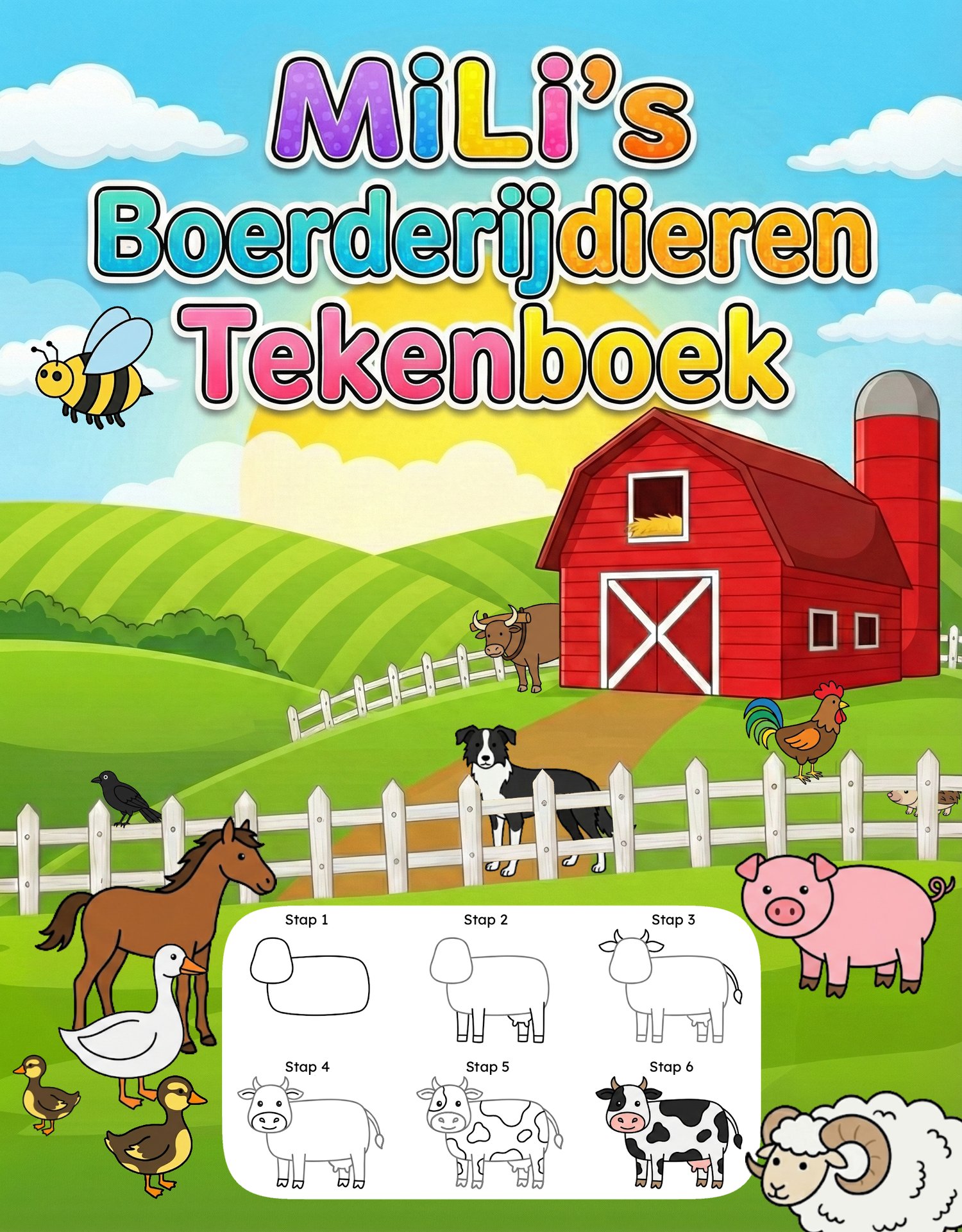 Is je kind gek op dieren en dol op tekenen? Deze stap-voor-stap tekengids is perfect voor jonge kunstenaars vanaf 3 jaar die hun favoriete boerderijdieren willen leren tekenen. Met slechts 6 simpele stappen per dier zal je kind versteld staan van hoe snel ze prachtige tekeningen kunnen maken van koeien, varkens, kippen, paarden, schapen en nog veel meer!