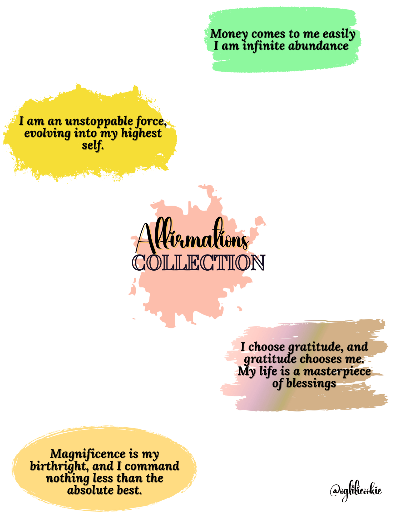 Elevate your entire being with the Affirmations Collection, a comprehensive set of five stunning 8.5 x 11 inch digital downloads. This isn't just art; it's a blueprint for transformation. Dive into powerful themes covering Abundance, Gratitude, Goddess, Money and Daily Affirmations, each designed to ignite your spirit and recalibrate your mindset. From manifesting financial flow to embracing your divine feminine power and cultivating radical self-love, this collection serves as your daily reminder to claim the magnificent life you deserve. Print them, frame them, or make them your digital wallpaper—it's time to speak your truth and watch your world shift.