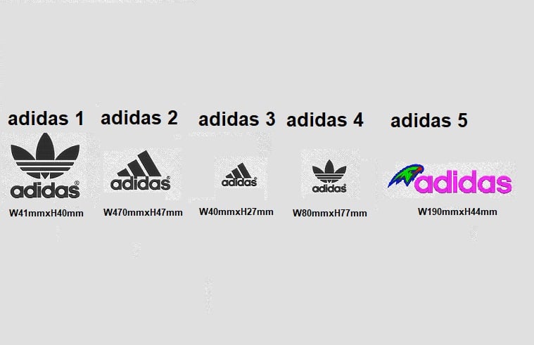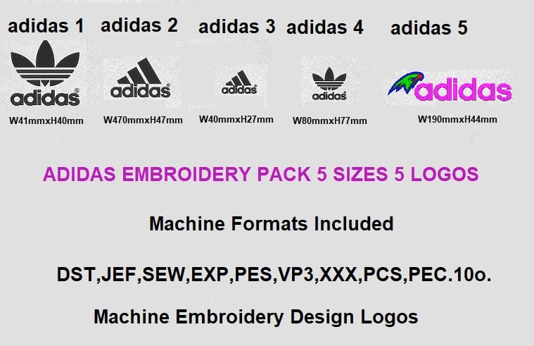 Adidas Pack 5 Logos Machine Embroidery Logo 5 Sizes. Instant Download. The design sews