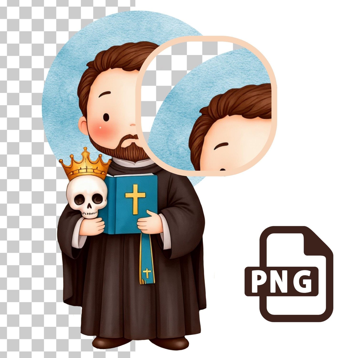 Icono San Francisco de Borja PNG Sin Fondo Estampa Digital – Clipart Jesuita Calavera Corona