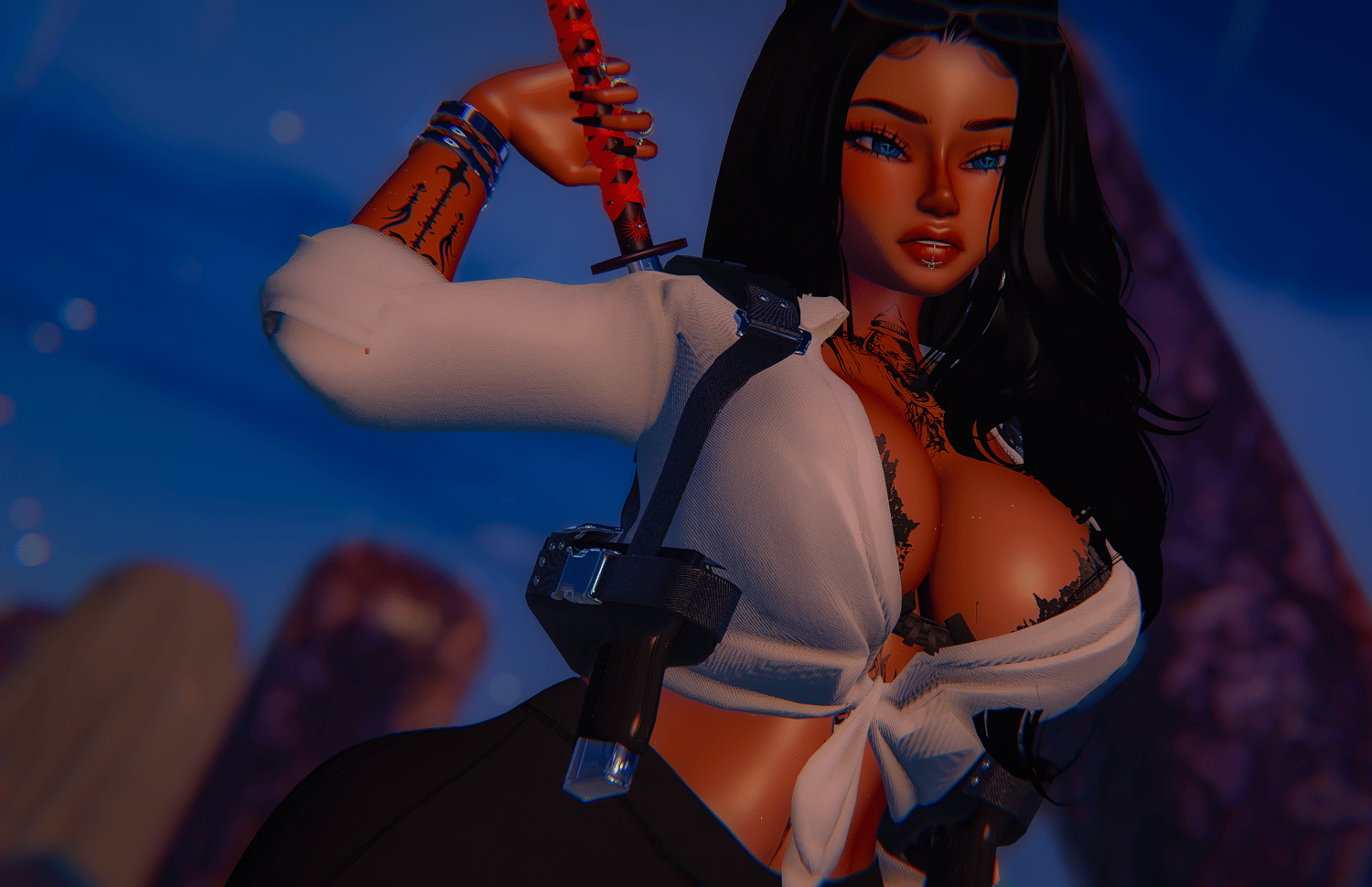 Body Texture by Drunk Harpy/ Face Texture-Brows&Lashes-Eyes by Jvliette / Ears by Jvliette/ Face Chain by Gwen/ Glasses by Nessy/ Piercing by peep / Edges by Jaslina/ Tennis Shoes by Nessy/ Gun and Harness by Kold / Oni Dress and Katana by MilkyMutt / Secretary Outfit by Nessy/ Choker By / Latex Bodysuit by Sezzy/ Lash add on by Sivka/Messy by Nessy / Blood by Nessy/ Ponytail by Nessy /Bun By Nessy Rings, Piercings, Bracelet, Necklace by Amboolents/ Crop Top and panties by Mutt / Condom by Hoshu_Neko / Boots by Beaniebaby /Gamer Skirt by Saikura/ Leggings by Sarrena/ Rings by Aestrenz /Pasties by XERO3d/ Lace Heels By:ThiccWitch / Belly Piercing By Electric Cherry/ Hoops By Snail/ Rope By Meowmi/ Tattoo By Drift /