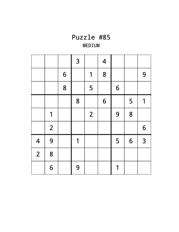 There’s 100 each of Easy, Medium and Hard Sudoku Puzzles, that’s 300, as well as all the Solutions. They’re presented in the form of a printable PDF which you can print out for yourself. Solving Puzzles is a great pastime, but not only that, but it’s a great way of keeping your brain in great working order. Keeping your brain active and stimulated is one way of postponing or even avoiding dementia. There’s 300 Puzzles in this PDF which should keep you busy for many hours. just download, print and enjoy them.