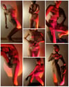 The Neon Demon is a reference set of 30 self portraits that uses dramatic lights and shadows to create textures and organic shapes drawn into the human body.