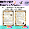 Halloween reading activities about Halloween, the history of Halloween, Halloween Costumes, pumpkins, Halloween Ghost Scary Stories, and more!
