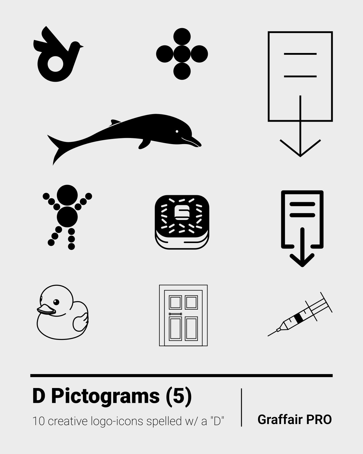 D Pictograms (5): The fifth set of ten pictograms, each beginning with a "D". These pictograms are part of the "1150 SVG Pictograms" mega bundle, which includes 1150 others.