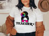 Tie Messy Bun Pink with Multicolored Sunflower Png Sublimation Design, Instant Download, Clipart for Teachers, Transparent Png