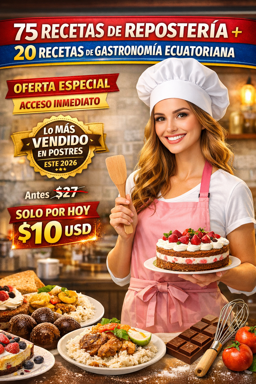 75 RECETAS DE REPOSTERÍA + 20 RECETAS DE GASTRONOMÍA ECUATORIANA