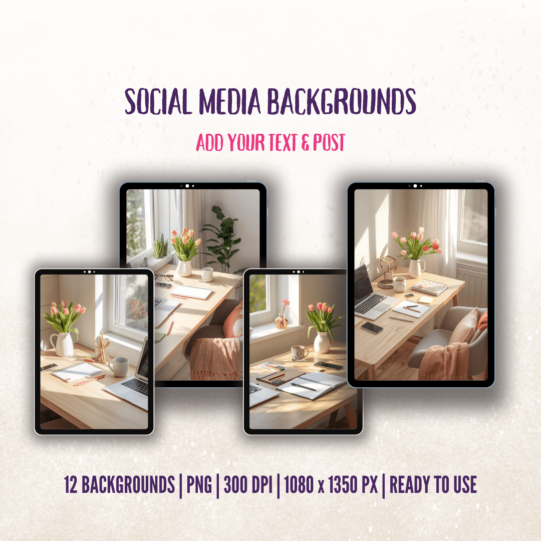 Spring Fresh Desk Vibes AI Image Pack – 12 Social Media Backgrounds