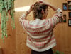 Le pull est tricoté d’une pièce, de haut en bas. Après les emmanchures, les mailles du corps et des manches sont divisées afin d’être tricotées séparément, en rond. Pour ajouter de la structure et de la solidité au vêtement, les mailles du col sont relevées à la fin et tricotées en rond.