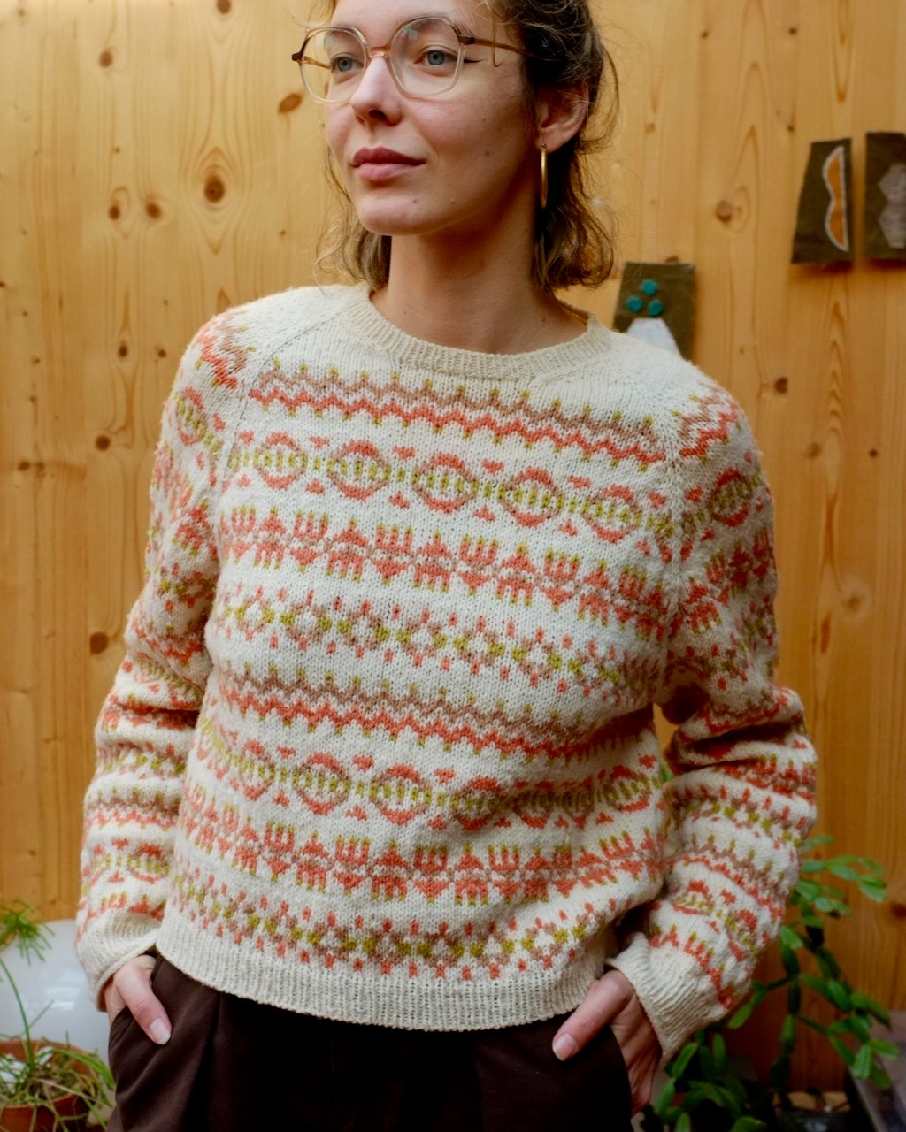 Each row never involves more than two colors, which makes this project much easier to make than it seems and above all addictive! Knitted from top to bottom in one piece, knitted entirely in the round, Orta is a real pleasure to knit.