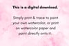 Each design comes in both black outline and pale greyscale, so you can choose whether to trace or paint directly onto the image. Ideal for traditional watercolor, Procreate, or printing as coloring pages!