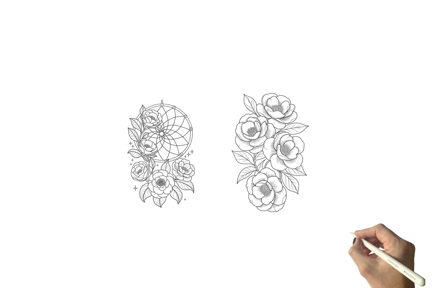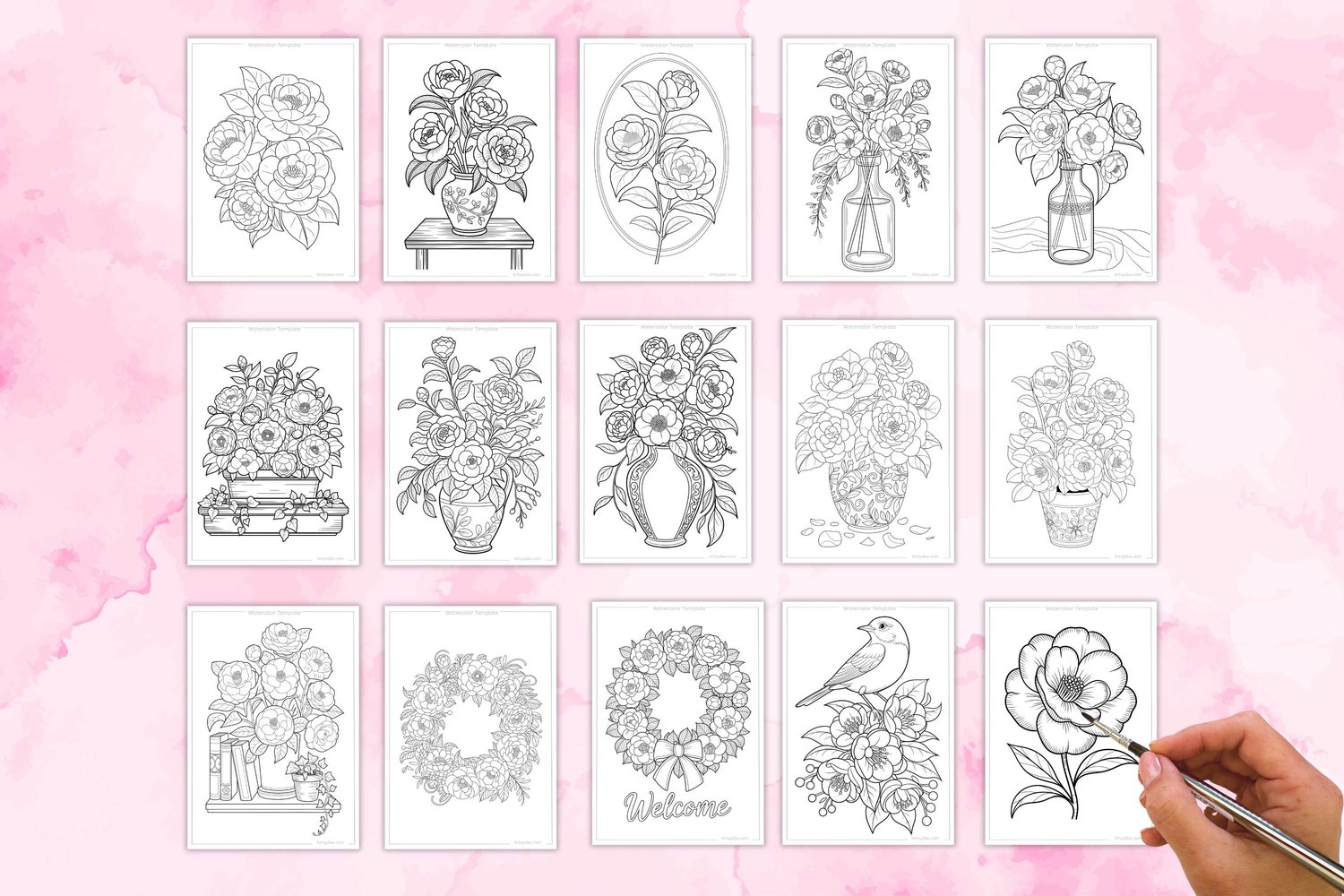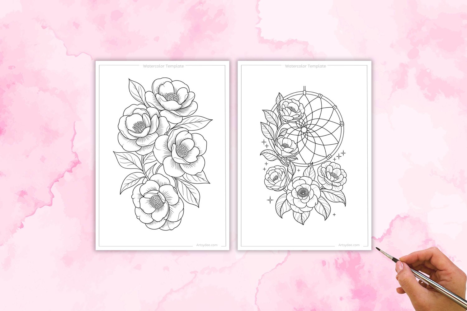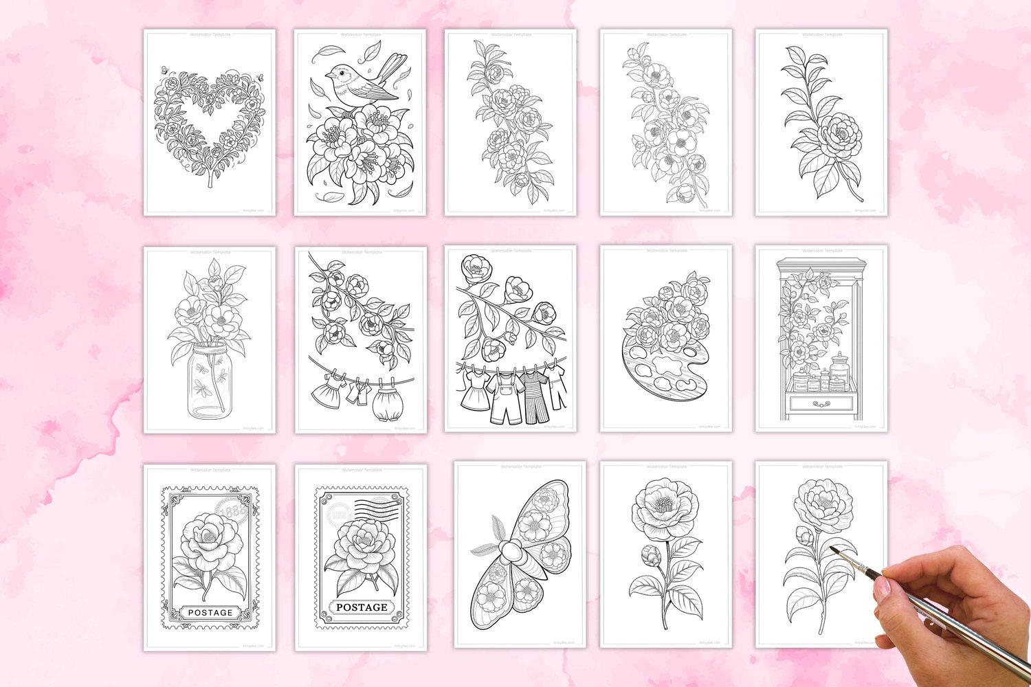 Camellia Watercolor Templates & Digital Stamps – Printable Line Art for Painting, Journaling & Procreate