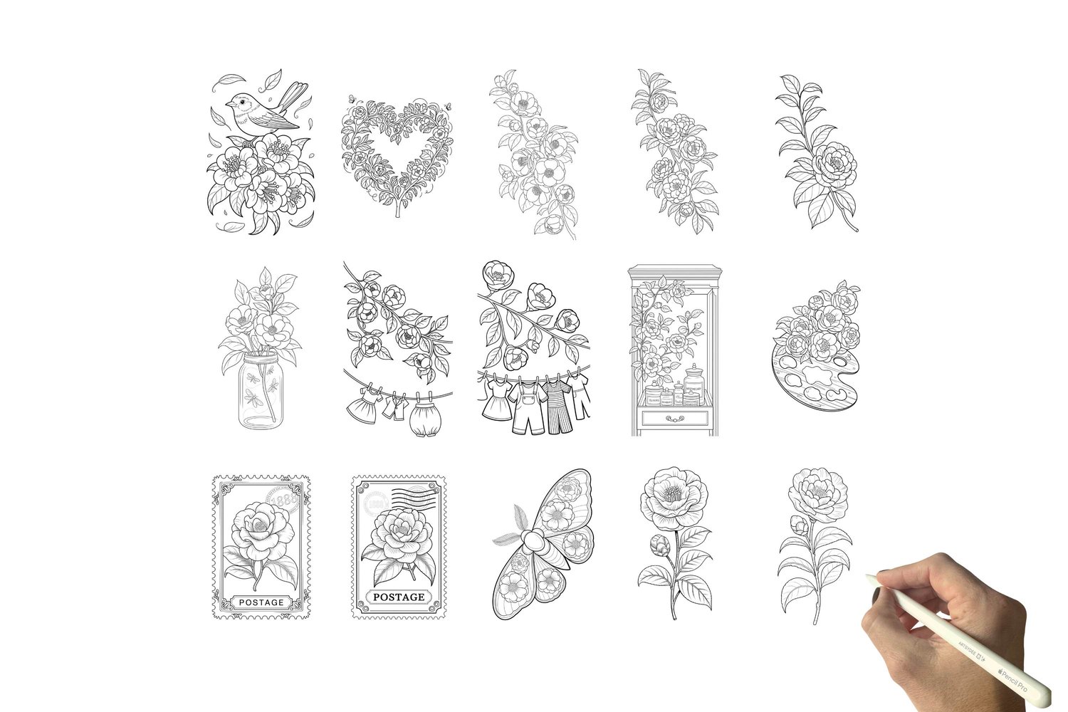 Add a Touch of Whimsy to Your Next Creative Project with These Delicate Camellia Outlines